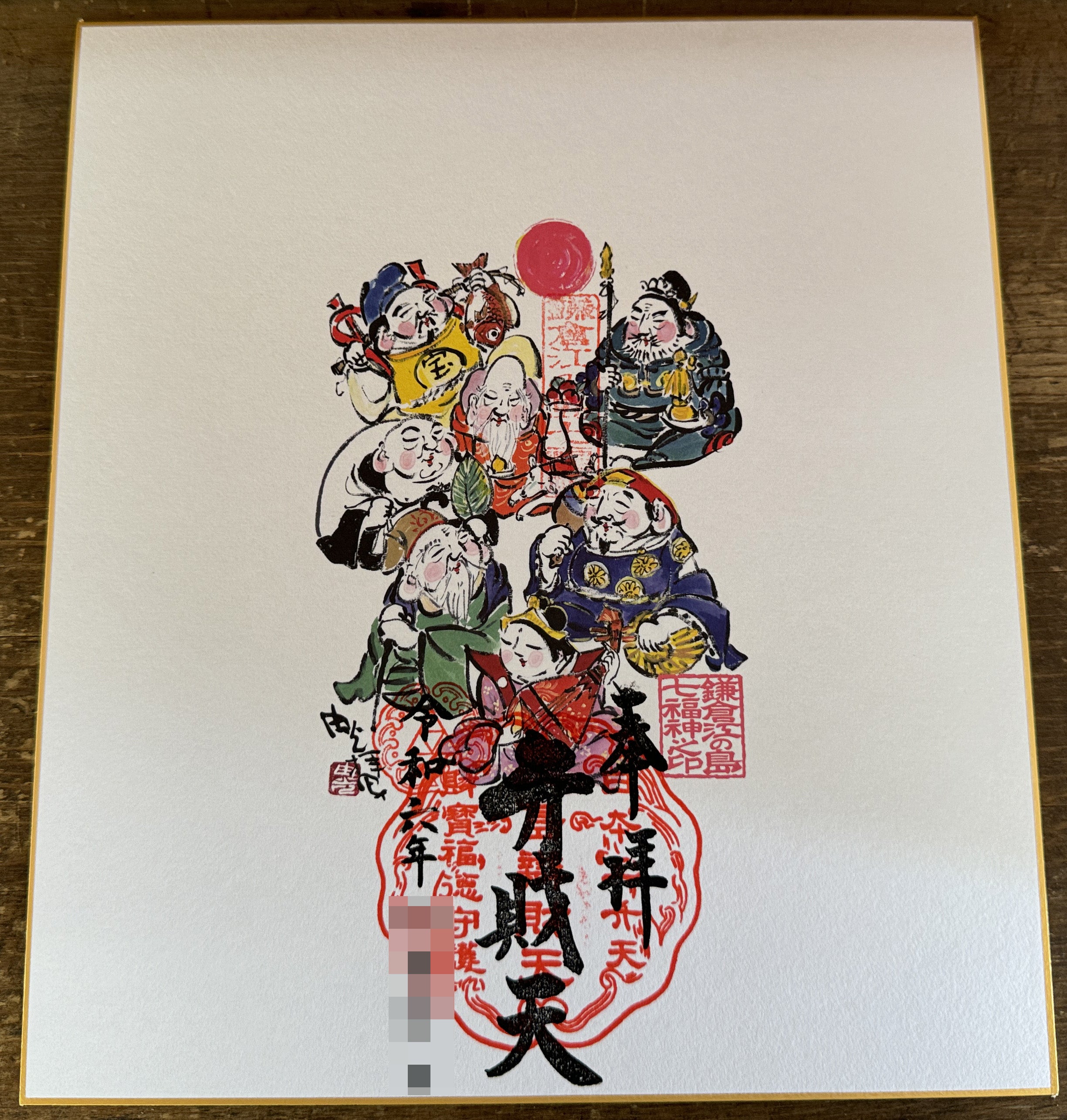 二葉山山麗七福神めぐりご朱印はダイソーで買った特大サイズの色紙に貼って飾りました